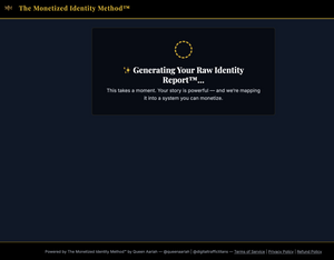Your identity is the asset. This Personalized report analyzes your lived experience, culture, skills, and goals to reveal 3 tailor-made ways to monetize your identity—from digital products to content creation, affiliate marketing, or even a physical product line. You’ll also get a mini value ladder for your best path (low, mid, and high-ticket ideas) so you can start smart and scale with purpose.